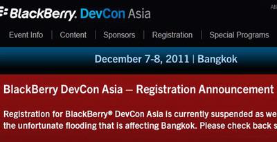 - Ajang pertemuan para pengembang aplikasi BlackBerry, BB DevCon Asia yang menurut rencana akan digelar di Bangkok, Thailand, 7-8 Desember 2011, ditunda sampai waktu yang belum ditentukan. Keputusan penundaan ini diumumkan RIM di website resmi BBDevCon, yang beralamat di http://www.blackberrydevcon.com/asia.